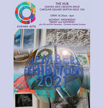 Craven Arts will be hosting the Grand Opening of the Craven Arts House plus the Christmas Exhibition from 8th to 11th December, 10am to 4pm. The address is Craven Arts House, 55 Otley Street, Skipton, North Yorkshire BD23 3RB